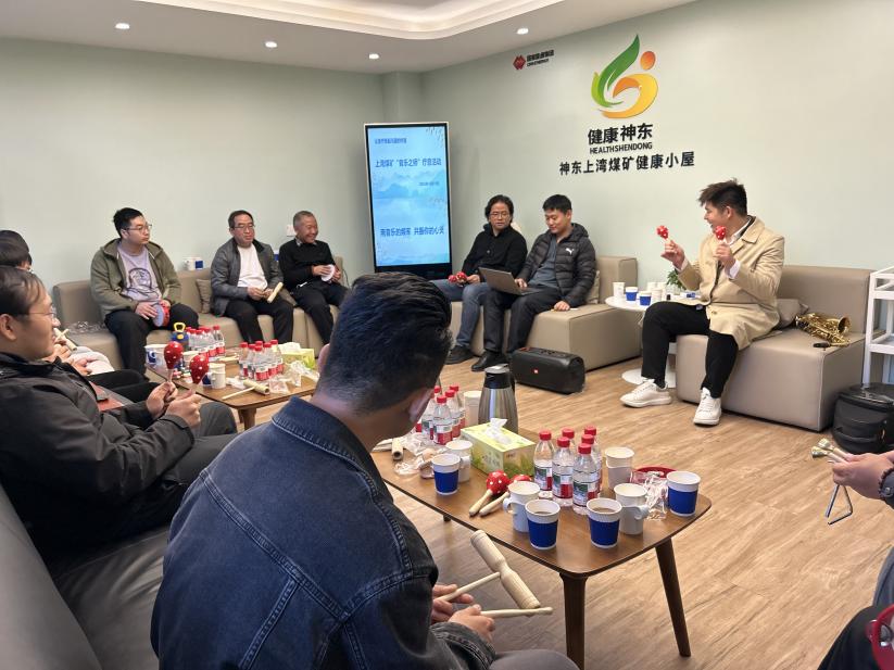 音乐疗愈活动的主题为“音乐与矿山的共鸣”,共有13位一线矿工参加。包括采煤工人,负责机电、通风和安全的技术员,以及地面辅助工作人员。音乐疗愈小组精心设计了“深度音乐解压”和“集体节奏共创”两个环节,通过“音乐感知”“集体表达”和“创作赋能”三阶段的活动,引导参与者释放压力、充盈内心积极能量。在沉浸式的音乐体验中,矿工们摆脱了高噪声环境和高压工作状态的影响,享受了身心的深度放松。在共创环节,矿工们在小组成员的专业指导下,共同参与奏响“矿工节奏”的表演。活动结束后,他们纷纷表示“像给大脑和身体洗了个澡”,对于音乐所带来的精神抚慰和双向赋能作用给予积极的评价,希望以后能有更多的机会参与。