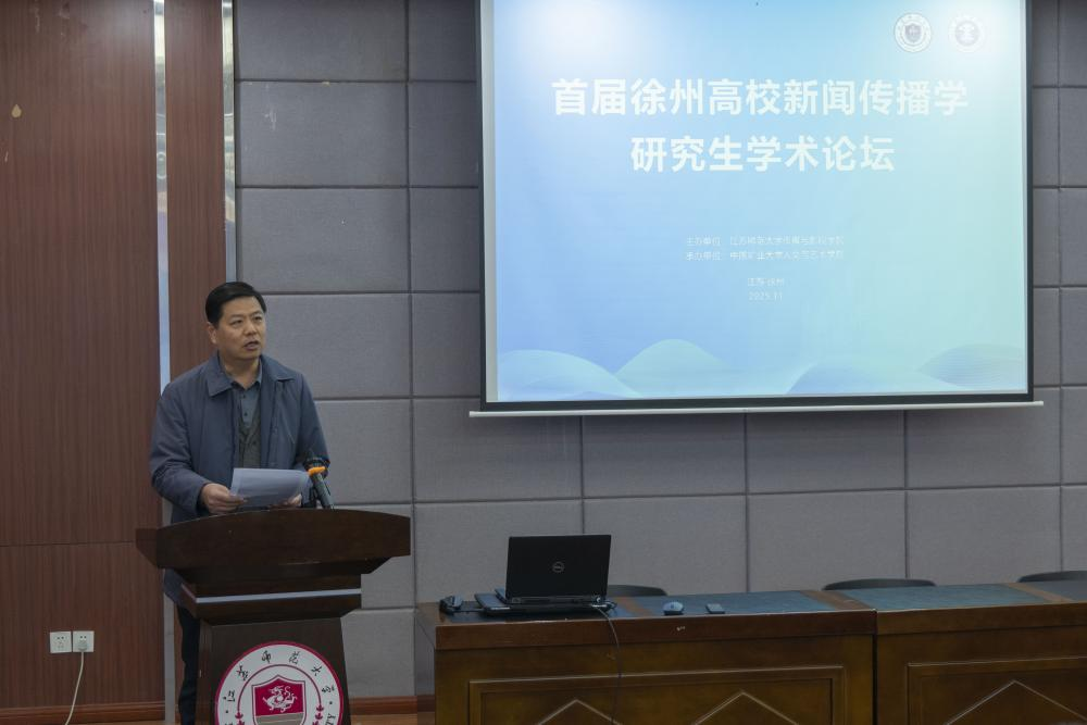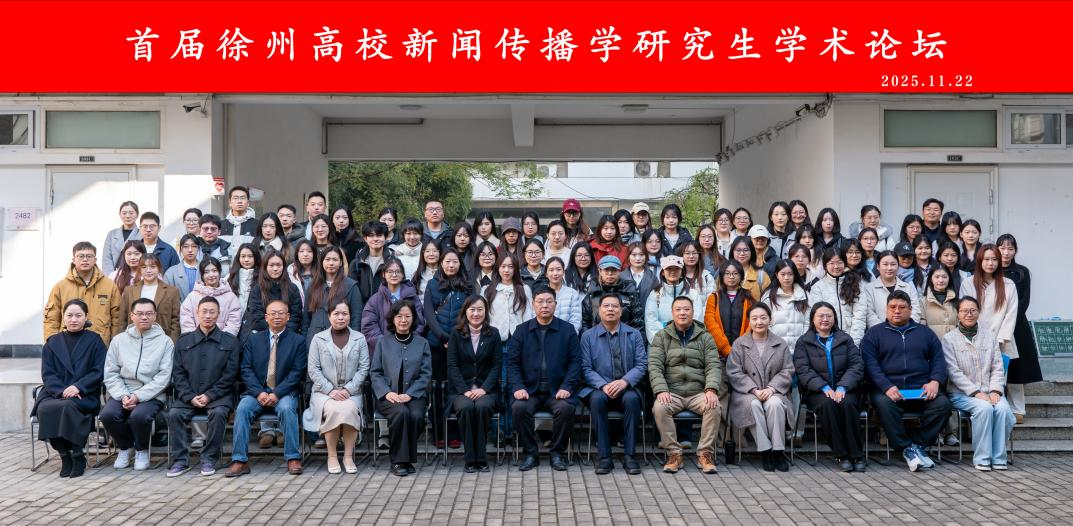 11月22日,由江苏师范大学传媒与影视学院主办、我院承办的“首届徐州高校新闻传播学研究生学术论坛”在江苏师范大学举行。江苏师范大学研究生院副院长夏雯、传媒与影视学院院长孟宪浦、我院新闻传播学系系主任曹洪洋出席开幕式并致辞,两校师生代表70余人参加了开幕式。开幕式由江苏师范大学传媒与影视学院教授陈红梅主持。