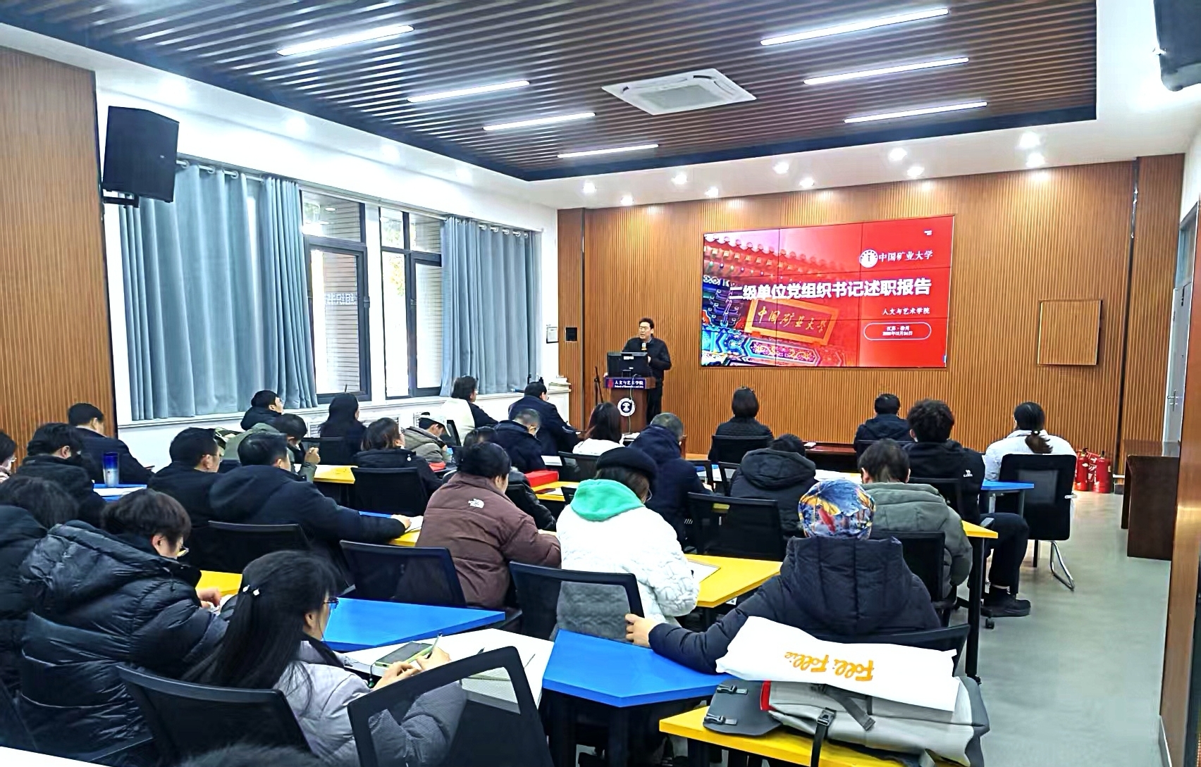 1月11日下午,我院在文科楼A111会议室召开学期末全院教职工大会。院领导和学院全体教职工参加会议。会议由院党委副书记姜媛主持。
