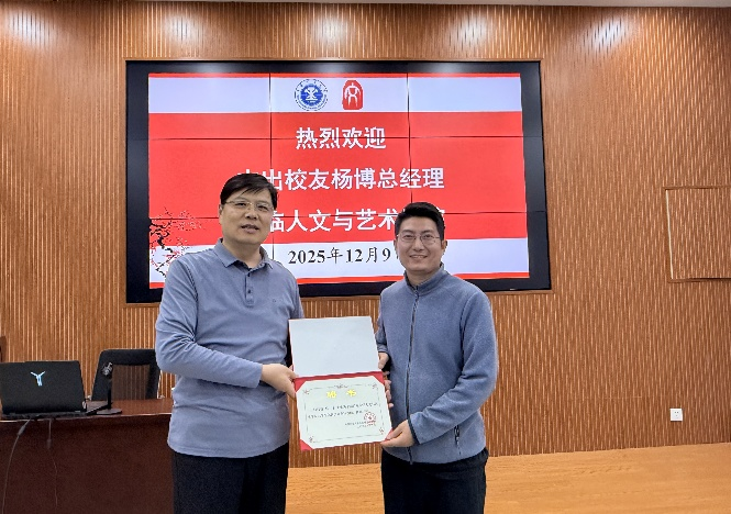 在互动交流环节,同学们积极提问。杨博结合个人从业经历,分享了在行业挑战中保持“坐住了别崩”的定力与心态,鼓励大家在实践中直面不足、持续积累。他还以多个参与项目为例,探讨了动画创作中“符号化表达”与“角色情感塑造”等关键问题,并就国内动画产业在国际环境中的发展现状与未来方向提出了自己的见解。讲座结束后,曹洪洋向杨博颁发了创业导师聘书,期待未来通过实习实践、主题分享等方式加强合作交流。