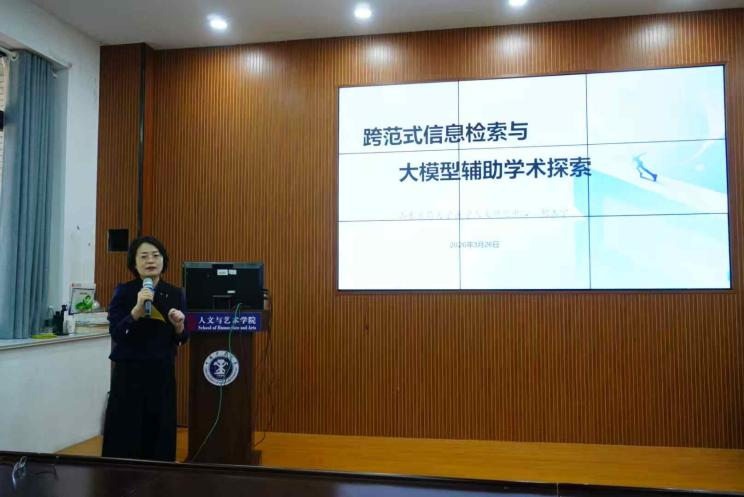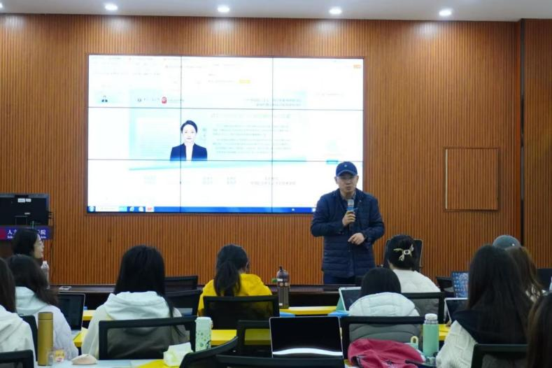 3月26日上午,山东医药大学医学人文研究中心副主任胡玉宁教授应邀来我院作“跨范式信息检索与大模型辅助学术探索”主题讲座。院党委书记赵红灿,新传系主任曹洪洋,以及新传系、中文系共计40余名师生参与讲座。讲座由新传系教授李金齐主持。