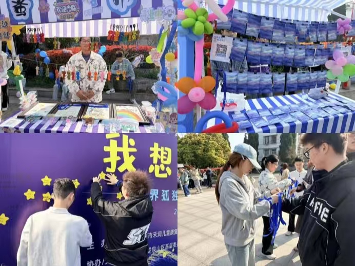 活动期间,志愿者们用彩纸、超轻黏土、木质材料等制作手工艺品,每一件都饱含对孩子们的善意。4月1日自闭症儿童开放日当天,志愿者们带着手工艺品前往徐州市星语家园自闭症康复中心,不仅把亲手制作的礼物送到孩子们手中,还配合机构老师开展绘画教学、趣味游戏等陪伴活动,用耐心和笑容拉近与孩子们的距离,让他们感受到来自外界的善意。