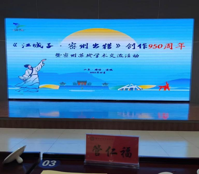 10月18日,中国矿业大学苏轼研究院院长、徐州市苏轼文化研究会副会长管仁福教授,应潍坊市苏轼文化研究会乔云峰会长的邀请,在潍坊工商职业学院参加了“纪念苏轼《江城子·密州出猎》创作950周年暨密州苏轼学术交流活动”。